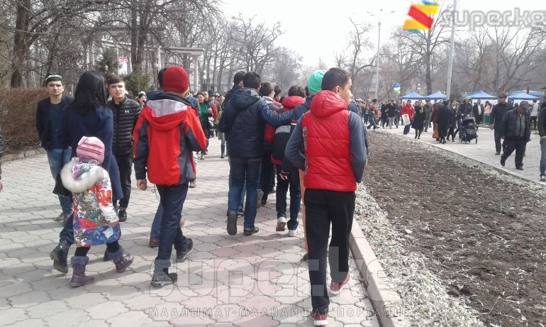 Учурда аталган даректерде жергиликтүүлөр менен чогуу Кыргыз өлкөсүндө жашап жаткан көптөгөн улуттун өкүлдөрү Нооруз майрамын белгилөөдө. Ошондой эле шаардыктар балдары менен түрдүү салтанаттуу иш-чараларга күбө болушууда.
