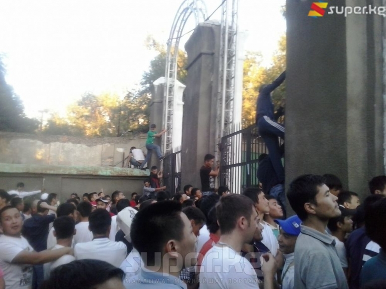 16-июнь, 2015-жыл. Бишкектеги Дөлөн Өмүрзаков атындагы стадиондо Кыргыз Республикасы менен Австралиянын футбол командаларынын беттеши өткөн. Билет алууга жетишпей калган миңдеген футбол сүйүүчүлөрү бактардын үстүнө жана стадиондун дубалына чыгып алып футбол көрүшкөн. Ошондон кийин күйөрмандардын стадиондон аттап кирбөөсү үчүн тосмолор коюлуп, бактар кыркылган.