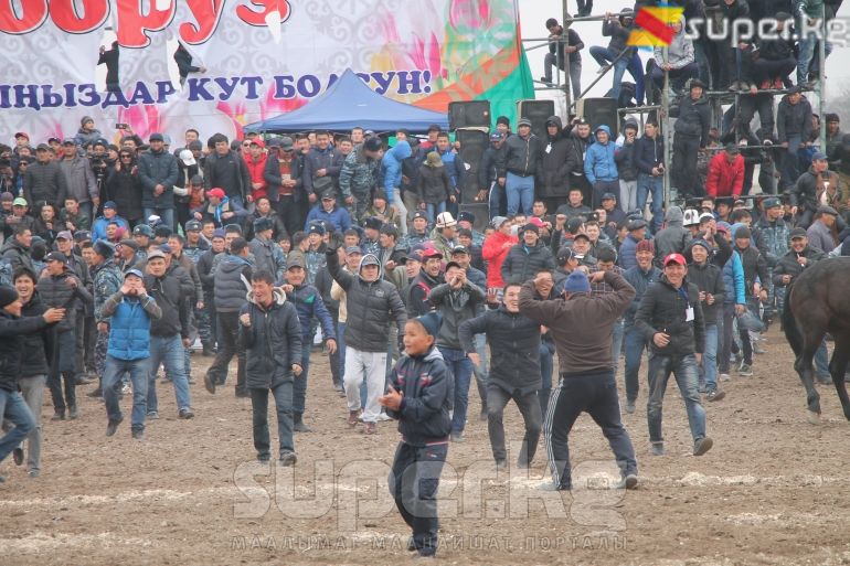 Сахнанын тирөөчүнө эле эки жүздөй адам чыгып алып көргөн, анын ичинде сахнанын баннерин тешип көргөндөр дагы болду. Көрүүчүлөр кооптуулугуна карабай, ат майдандын ичине дагы кирип кетишти. Ат үстүндө жүргөн оюнчулар күйөрмандарды аралап кеткен учурлар болду.