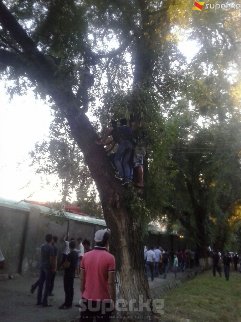 Сынган отургучтар, тосмодон ашып, дарактарга чыккан кыргыз спортчуларынын күйөрмандары (фото)
