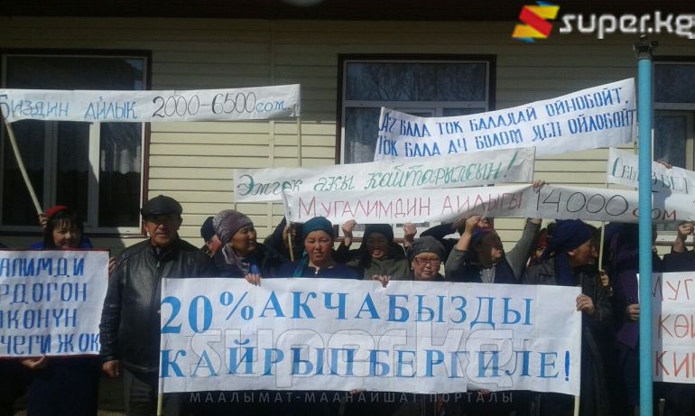 Эскерте кетсек, буга чейин мугалимдер айлык акылары кыскарып жатканына нааразы болуп, акцияга чыгышкан.