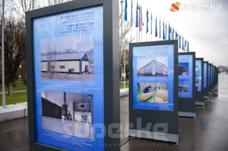 "Аталган аянтта Эл аралык аялдар күнүнө жана Ноорузга карата сүрөт көргөзмөсү болуп өткөн. Бул ирет көргөзмө 2010-жылдагы 7-апрелде болгон окуяны белгилөөгө арналат. Анда заманбап сүрөтчүлөрдүн Кыргыз өлкөсүнүн акыркы жылдардагы маанилүү окуялары жана 2010-жылдын 7-апрелиндеги окуялар хронологиялык ырааттуулук менен көрсөтүлөт", - деп айтылат маалыматта.