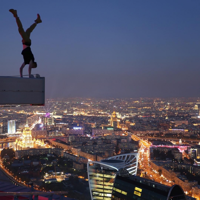 25 жаштагы орусиялык жигит көк тиреген имараттардын чокусунда кооптуу трюктарды аткарып каражат табат