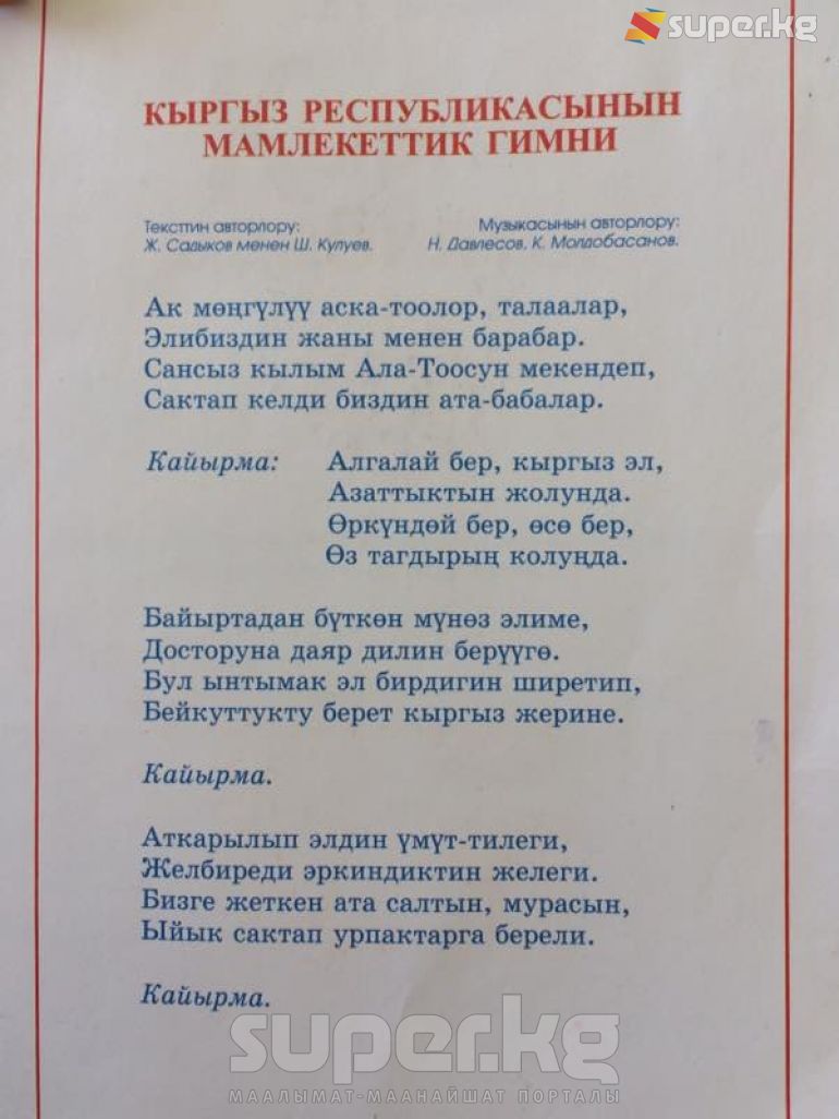 9-класстын Кыргыз адабиятында гимндин сөзү туура эмес жазылганын бүгүн, 17-апрелде окурман SUPER.KG порталына WhatsApp аркылуу билдирди.