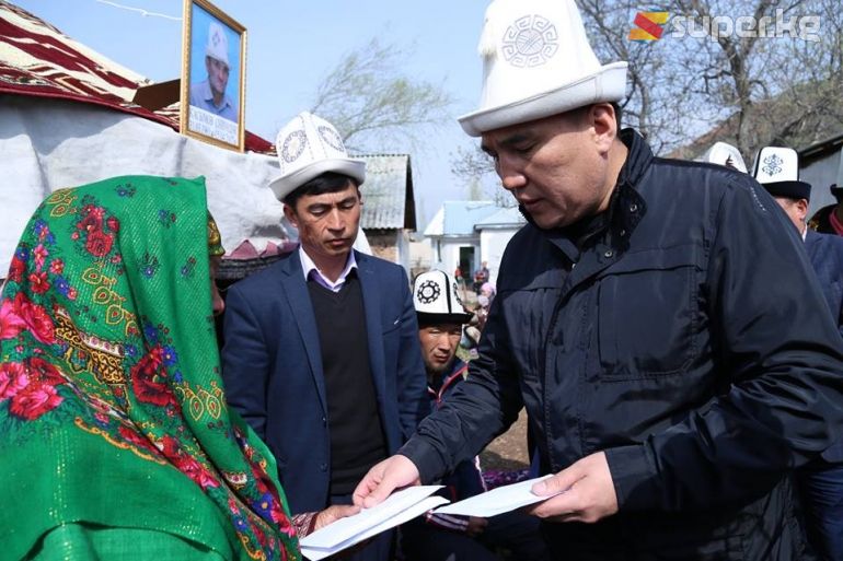 "Маркумга куран окутуу зыйнатына ыйгарым укуктуу өкүл Таалайбек Сарыбашов катышып, президент Алмазбек Атамбаевдин, өкмөт башчы Сооронбай Жээнбековдун жана өкмөттүн Ош облусундагы ыйгарым укуктуу өкүлүнүн аппаратынын атынан акчалай жардамды тапшырды", - деп жазылат маалыматта.
