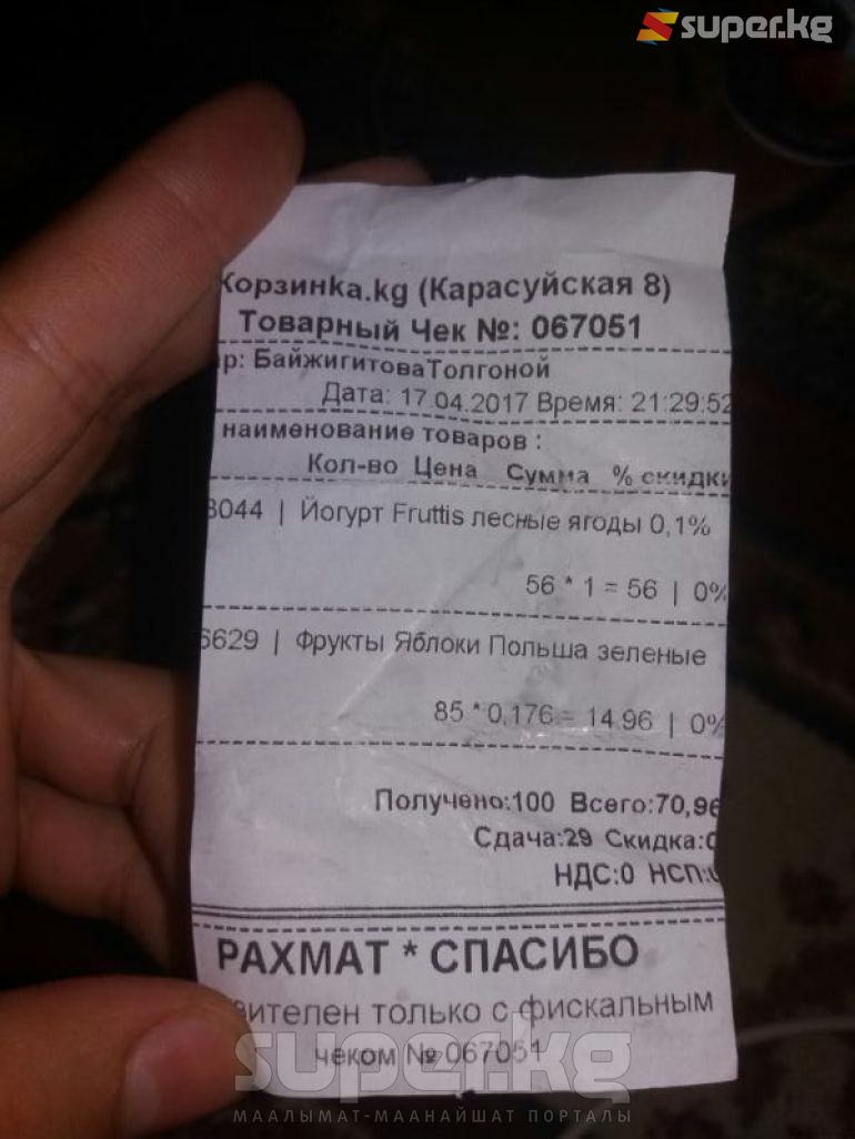 "Кечээ, 17-апрелде саат 21:30да йогурт алганбыз. Үйгө келип ачып карасак, ичи көгөрүп кетиптир. Бүгүн, чек менен чогуу алып барсак, 2 администратор кабыл албай коюшту. Азыкка алар жооптуу экенин айтсак, "колуңардан келгенин кылып алгыла" дешти. Йогуртту колубуздан алып, төгүп жаткан жеринен араң алдык. Аны эч жакка алып барып арызданбасын дешти окшойт. Андан соң кабинетине бекинип алышты", - дейт окурман.