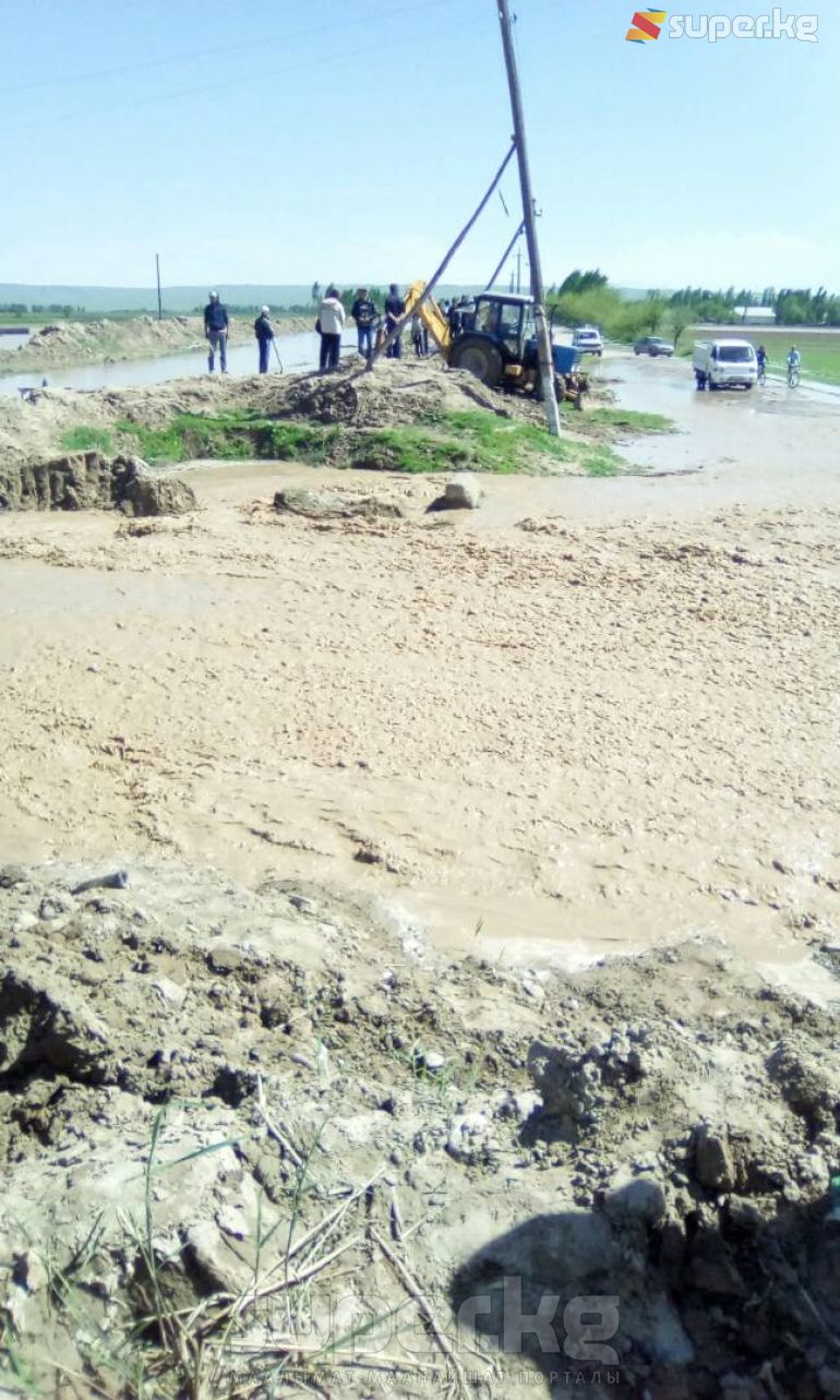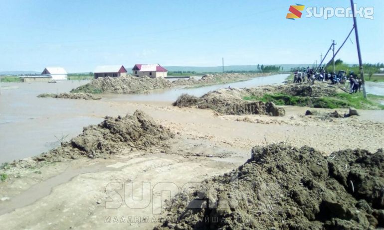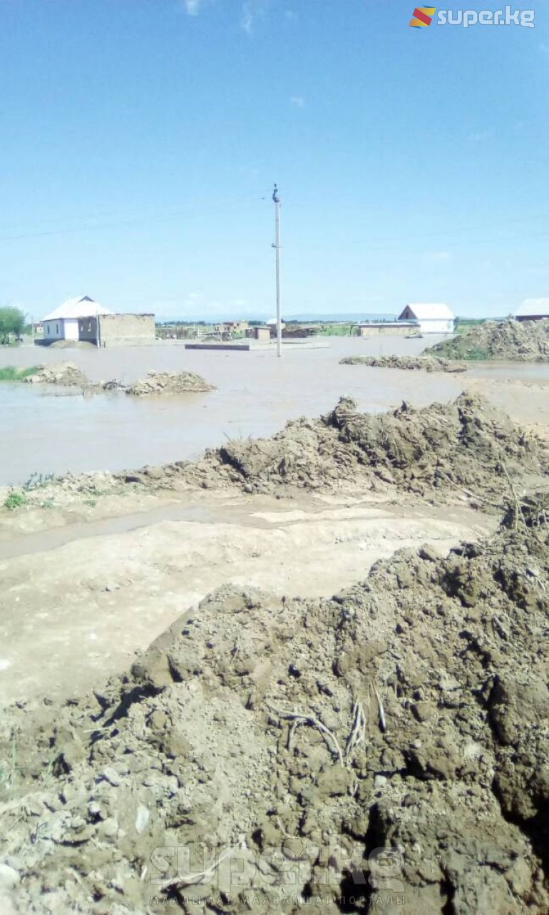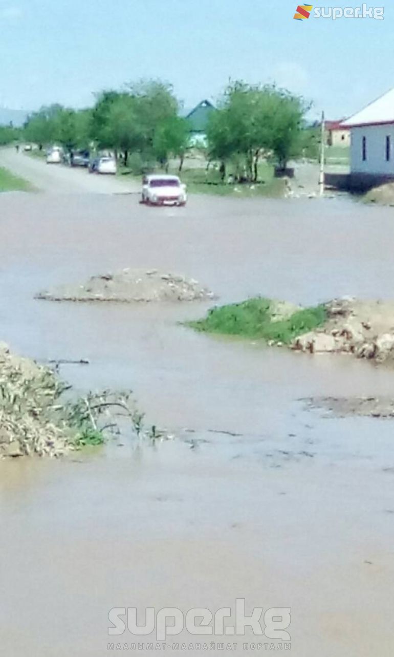 "Тентек-Сай суусу жээктен чыгып, айылдардагы үйлөрдү, жолдорду, эгиндерди суу каптады. Учурда Өзгөчө кырдаалдар министрлиги, айыл өкмөттөр техника менен иштеп жатышат", - дейт окурман.