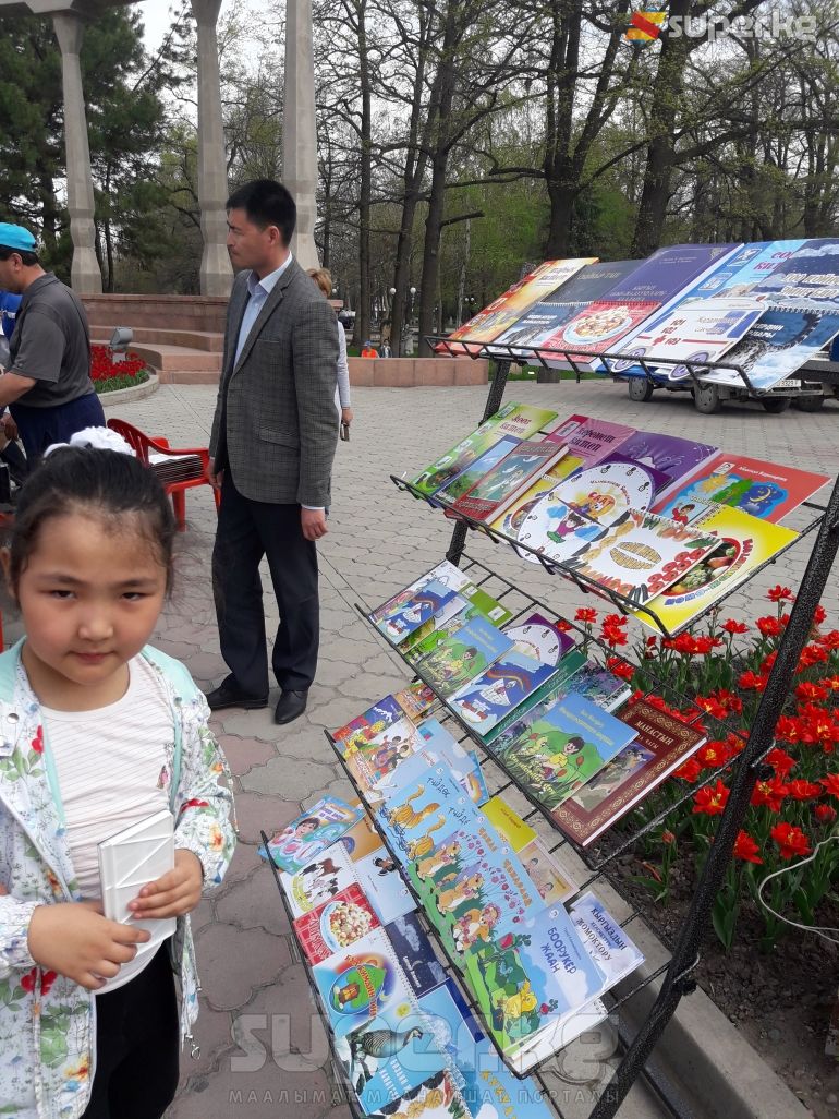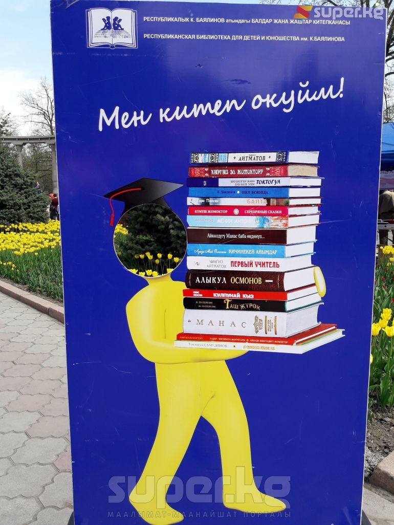 Бүгүн, Бишкек шаарындагы Эркиндик гүл багында "Китеп күнү" майрамы өтүүдө. Анда ата мекендик, чет элдик жазуучулардын түрдүү жанрда китептери жарманкеге коюлган. Мындан тышкары шаардагы окуучулар келип, "Биргеликте окуйбуз" долбоорунун негизинде түрдүү кызыктуу оюндардын коштоосунда, китеп, чыгармалар менен таанышып жатышты.