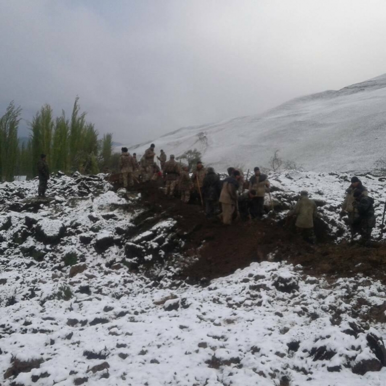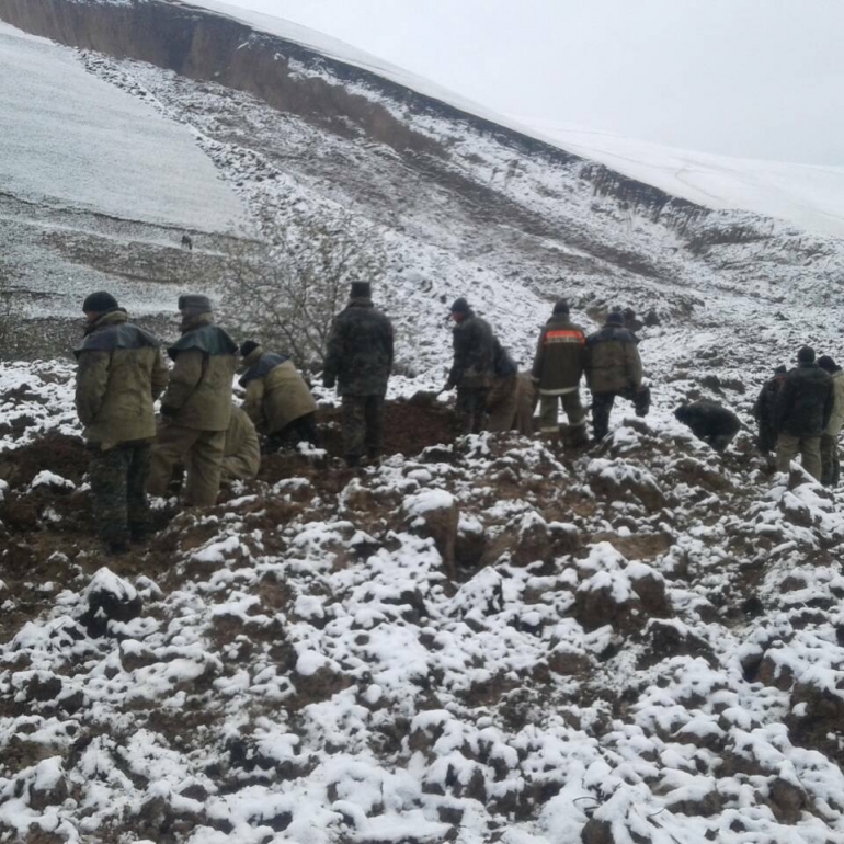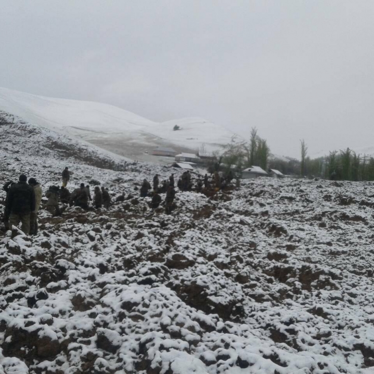 "2017-жылдын 30-апрель күнү саат 10:50дө издөө иштери улантылып, мөндүр жаап убактылуу токтотулган. Учурда кайрадан улантылууда. Издөө иштерин 380 адам жүргүзүшүүдө.