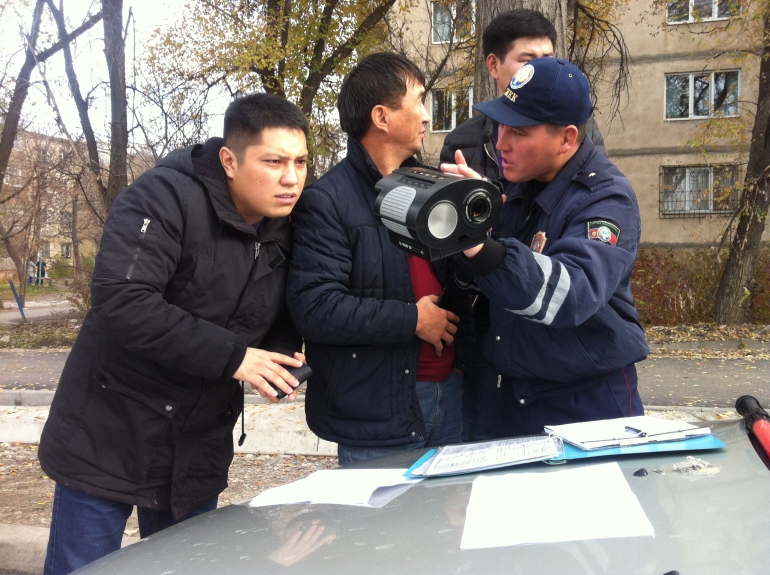 2016-жылдын башында ТРАСЕКА долбоорунун алкагында “Жол коопсуздугу” ачык коому Патрулдук милиция менен биргеликте саатына 40 километр менен жүрүү керектиги тууралуу белгиси бар Жукеев-Пудовкин көчөсүнүн оңдолгон бөлүгүндө рейд жүргүзгөн. Эреже бузган айдоочулардын 95 пайыздайы Патрулдук милициянын инспекторлоруна доосун айтышкан. Баары протокол толтурулбашын, айып төлөнүшүн каалашкан эмес. Алар айып төлөөдөн качып, туугандарына, тааныштарына чалып башташкан. Айдоочулар жоопко тартылбашына ишенишип, “кандай акыңар бар?”, “мен жалгыз эреже бузуучу эмесмин” деп нааразы болушкан.