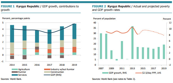Докладга ылайык, Орто Азия боюнча Тажикстандын ички дүң продукциясы 6,5тен 5,5 пайызга чейин, Өзбекстандыкы 7,8ден 7,6га чейин төмөндөйт. Түркмөнстандыкы 6,2ден 6,3 пайызга жогорулайт. ЕАЭСке мүчө болгон мамлекеттердин ички дүң продукциясы өскөнү менен, көрсөткүч боюнча Кыргыздыкына жетпеси аныкталган.