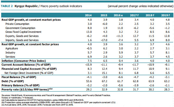 "Кыргыз экономикасы 2016-жылга караганда өстү, бирок негизги көрсөткүчтөр жетишсиздиктерди жана өсүүнүн сапатын жашырууда. Келечекте экономиканын өсүшү болот, бирок сырткы факторлордун алдында алсыздыгы сакталат", - деп жазылат докладда.