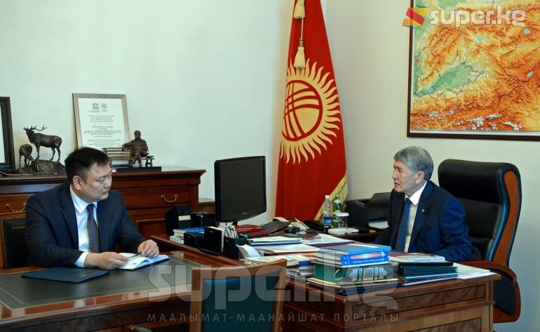 Бүгүн, 12-майда президент Алмазбек Атамбаев Өнөр жай, энергетика жана жер казынасын пайдалануу мамлекеттик комитетинин төрагасы Дүйшөнбек Зилалиевди кабыл алды. Бул тууралуу президенттик аппараттан билдиришти.