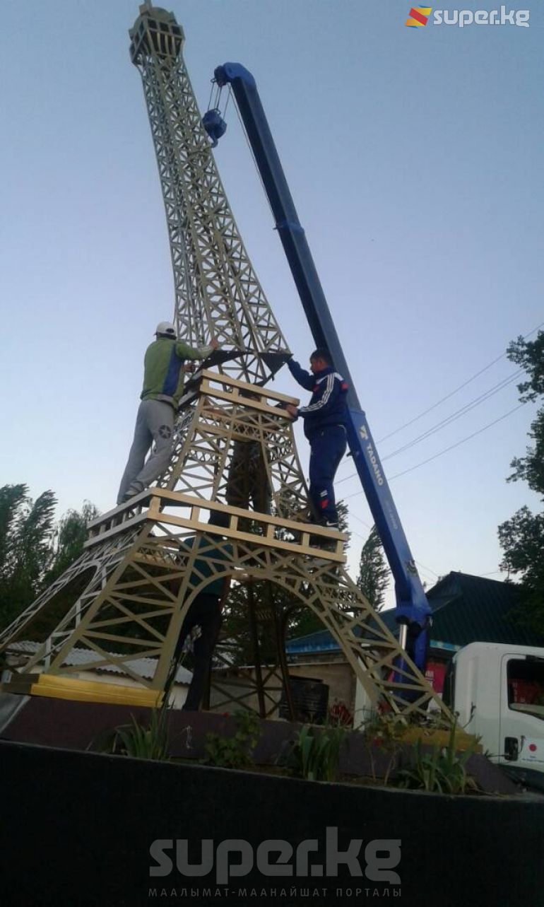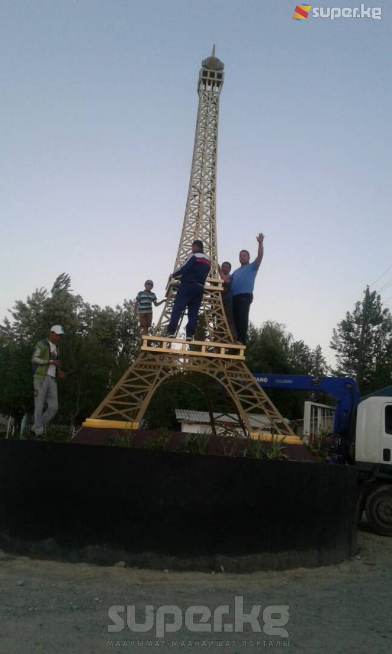 Жалал-Абад облусундагы Аксы районунун Кош-Дөбө айыл аймагында "Эйфел" мунарасынын үлгүсү курулду. Бул тууралуу бүгүн, 15-майда SUPER.KG порталына Кош-Дөбө айыл аймагынын башчысы Асанбек Тыныбеков билдирди.