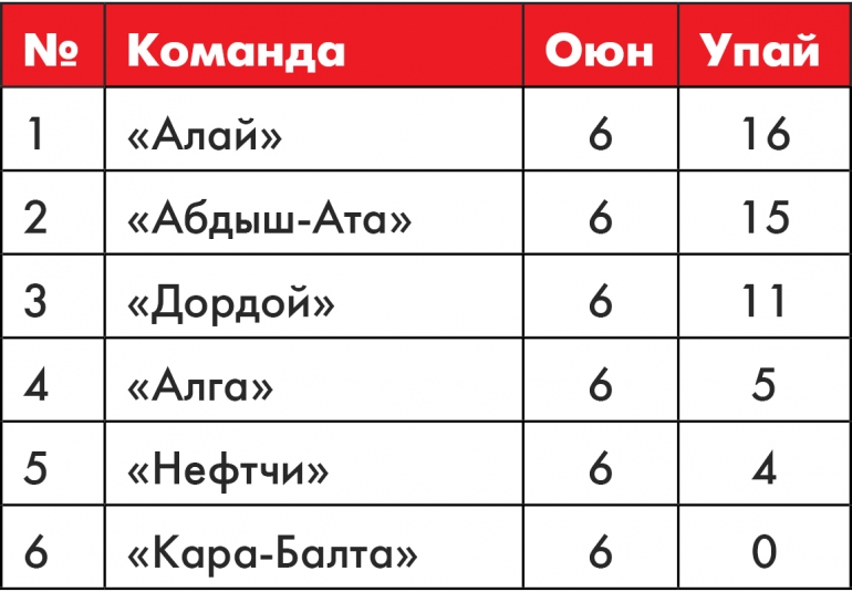 Бул жеңиш менен “Абдыш-Ата” 15 упай топтоп, “Алайдын” артынан түштү.
