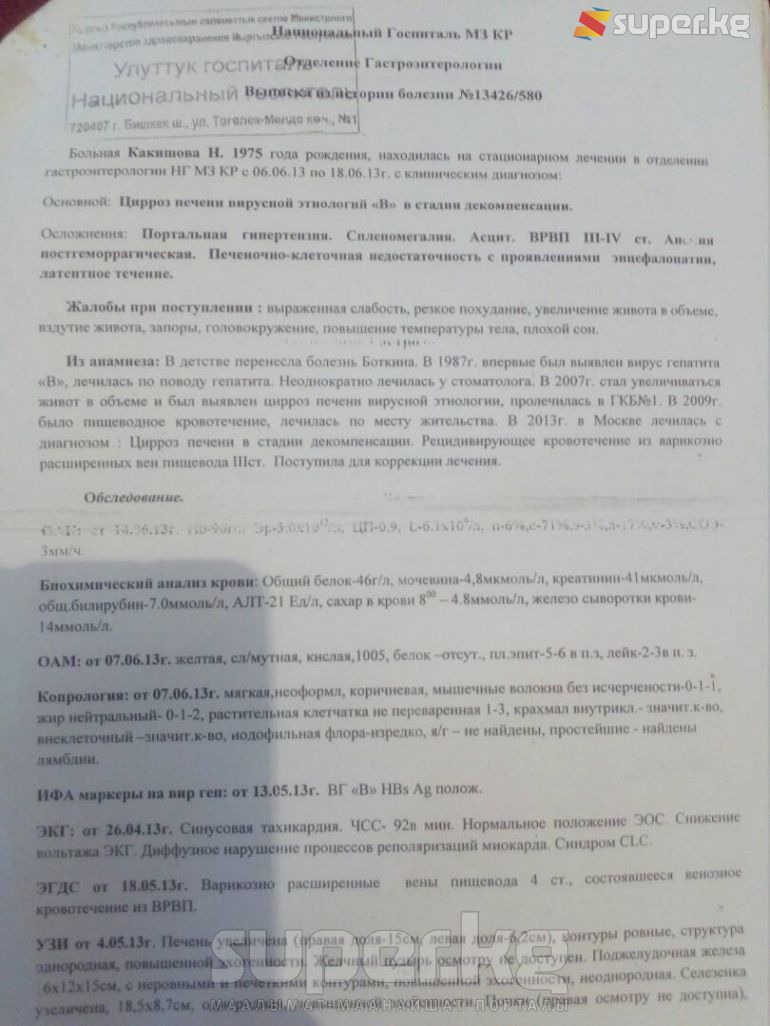 "Тааныш дарыгерлер бооруңду алмаштыр деген кеңеш беришүүдө. Ал үчүн Индияда операция жасатууга 40 миң АКШ доллары жумшалат. Биздин үй-бүлөдө мындай каражат жок болууда. Кайрымдуу адамдар жардам берсе, баш тартпайт элем. Анткени ден соолугумду калыбына келтире албай кыйналып жүрөм", - деп кошумчалады Какишова.