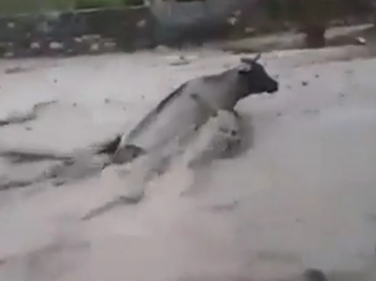 ЭЛДИК ВИДЕО: Баткенде сел менен кошо уйдун агып бара жатканы видеого түшүп калган