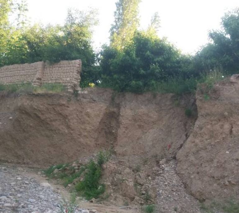 "Чарбактын дубалдарына аң жакындап калган үй - менин эжемдин үйү. Былтыр жазында сел келип ушундай кооптуу жагдай жаратып кеткен. Ал жерде эки үй бар, азыр коркунучта турат. Эки күндөн бери радио-теледен аба ырайы бузулат десе эле кайра коркуп жатабыз. Жергиликтүү бийликке айтсак, былтыртан бери биздин үнүбүздү укпай жатышат", - деди айыл тургуну.