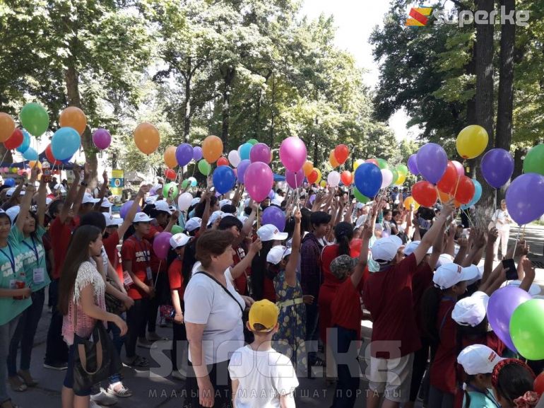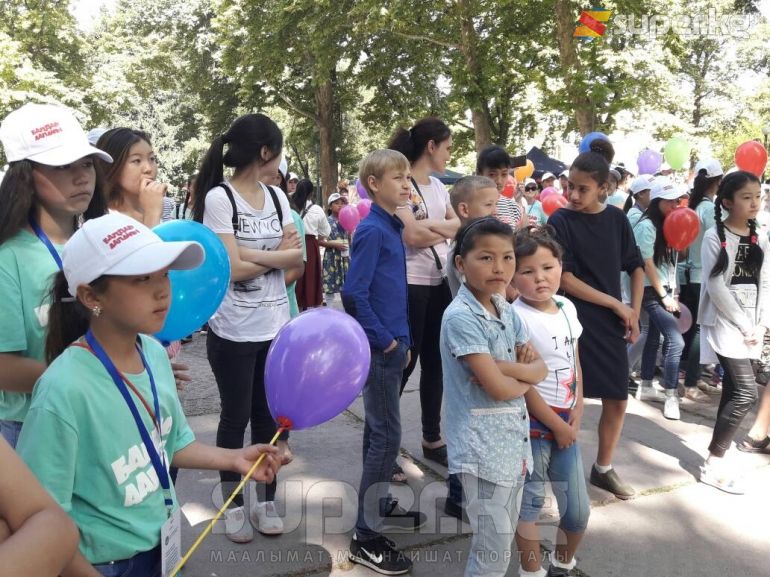 Салтанатка шаардагы мектеп окуучулары, билим берүү борборлорунун тарбиялануучулары жана жер-жерлерден келген миңден ашуун балдар катышууда.