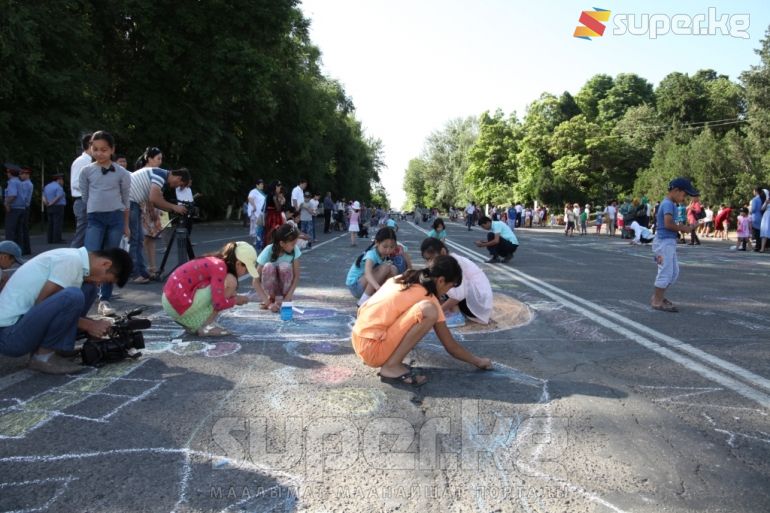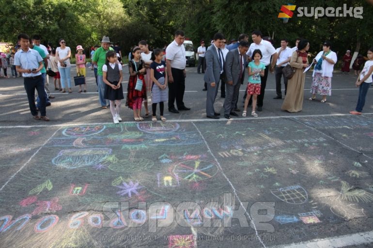 Маалыматка ылайык, “Өчпөс от” мемориалдык комплексинин алдында балдар асфальтка “Менин шаарым” деген тема боюнча сүрөт тартышты. Мыкты тартылган сүрөттөр тандалып, жеңүүчүлөргө белектер берилди. Мындан сырткары окуучулар арасында спорттук таймаштар өттү.