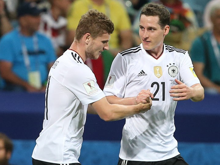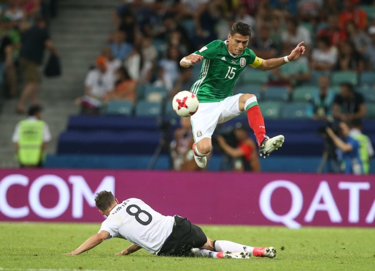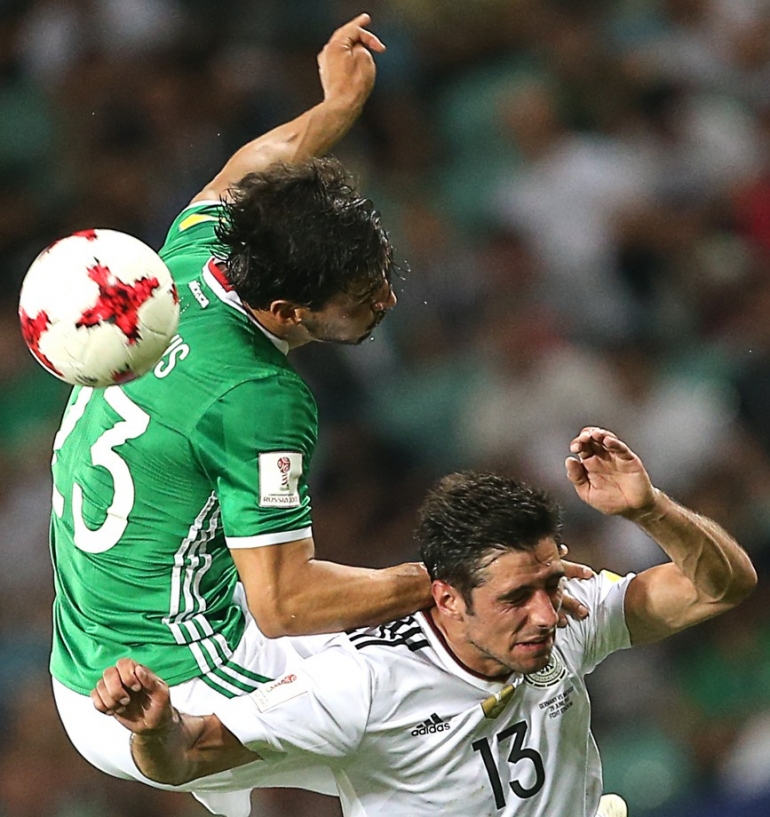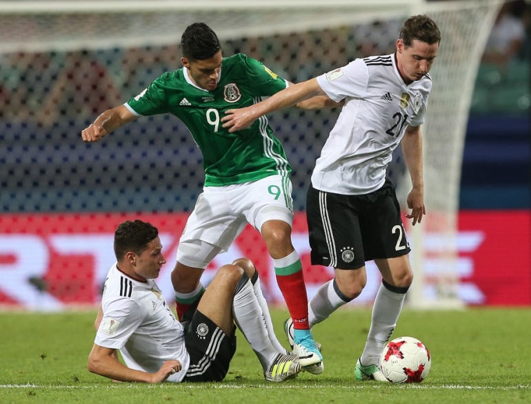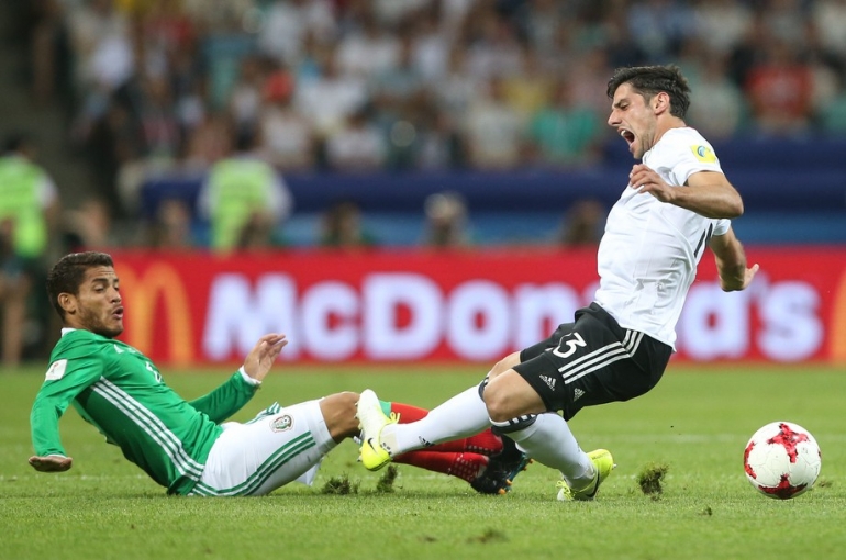 29-июндан 30-июнга караган түнү Орусиянын Сочи шаарындагы "Фишт" стадионунда Конфедерациялар Кубогунун финалына чыгуу үчүн Германия менен Мексиканын курама командалары кез келди. Оюндун алгачкы бөлүгүндө Германиянын жарым коргоочусу Леон Горецка эки гол киргизүү менен командасын алдыга сүрөй алса, экинчи бөлүктө Тимо Вернер үчүнчү голду жаратты. Андан соң мексикалыктар чабуулду күчөтүп, Марко Фабиана Германиянын дарбазасына бир гол киргизди. Бирок андан көп өтпөй Германиянын жарым коргоочусу Амин Юнес төртүнчү голдун ээси болуп калды. Оюн Германиянын пайдасына 4:1 эсебинде аяктады.