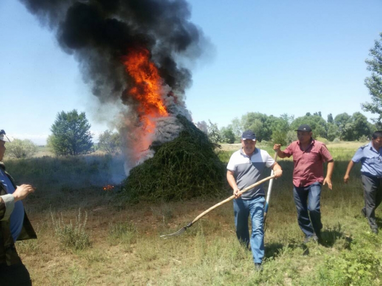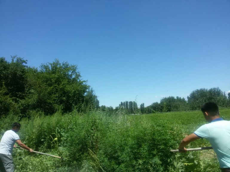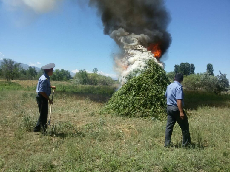 "Бакай-Ата райондук милициясы баңгиликке каршы профилактикалык иш-чара уюштуруп, Миң-Булак айылынын аймагына тийиштүү талаа аянттарынан 1,5 гектар жапайы өскөн маңзатын чаап жыйнап жок кылышты. Бул иш-чара жергиликтүүлөрдүн баңгиликке азгырылбоосунун алдын алуу үчүн өткөрүлдү", - деди Сарногоева.