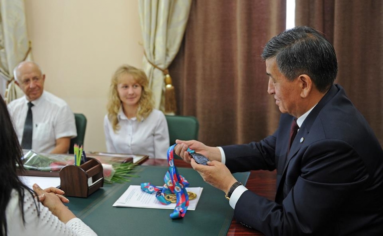 Бүгүн, 12-июлда өкмөт башчы Сооронбай Жээнбеков жеңил атлетика боюнча Азия чемпиондугунун жеңүүчүлөрү Дарья Маслова жана Адилет Кыштабеков менен жолукту. Бул тууралуу Жаштар иштери, дене тарбия жана спорт агенттиги билдирди.