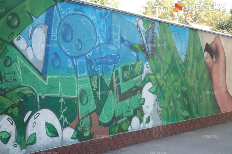 "Алгачкы этаптарда жарандардын түшүнүгү жок болчу. Алар граффитинин маанисин түшүнчү эмес, "мунун эмне кереги бар?” деген суроолор дагы берилчү. Азыр эл маанисин билип, түшүнгөнү кубантат. Силер билгендей, азыркы учурда борбор калаада көп жылдык өсүмдүктөрдү кыюу маселеси күчөп жатат. Биз тургундардын жашылдандырууга көңүлүн бурсун деп сүрөттү тартуулап жатабыз. Сүрөт менен биздин шаар дем алышы үчүн көп жылдык өсүмдүктөр, бак-дарактар керектигин көрсөткүбүз келген. Бул сүрөттө киши бир колу менен жашылдандырып жана экинчи колу менен аны өчүрүп жатканы көрсөтүлгөн”, - деп кошумчалады Баглан Мамаев.