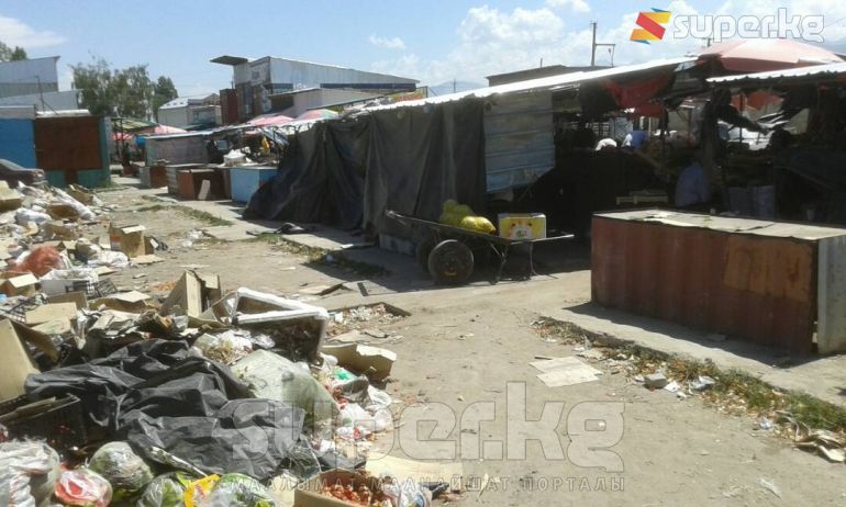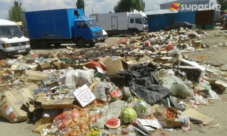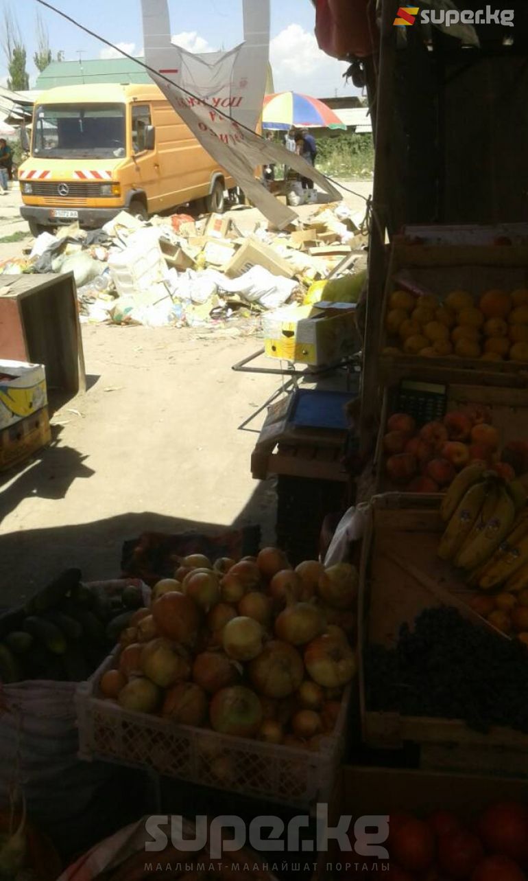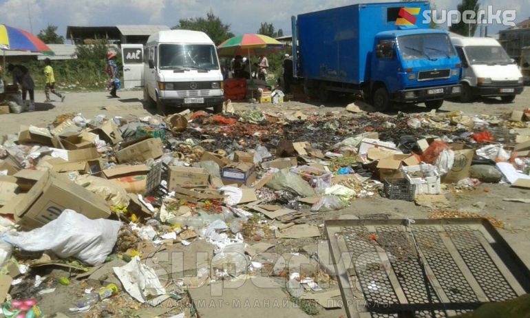 Окурмандын маалыматына ылайык, аталган базардагы таштандынын алынбай жатканына 1 айга жакындап калды. Ага жакын эле жерде мөмө-жемиштер сатылат. Таштандыга жашылча, тамак-аш баары ылганбай ыргытылгандыктан анын айланасына жагымсыз жыт келип турат.