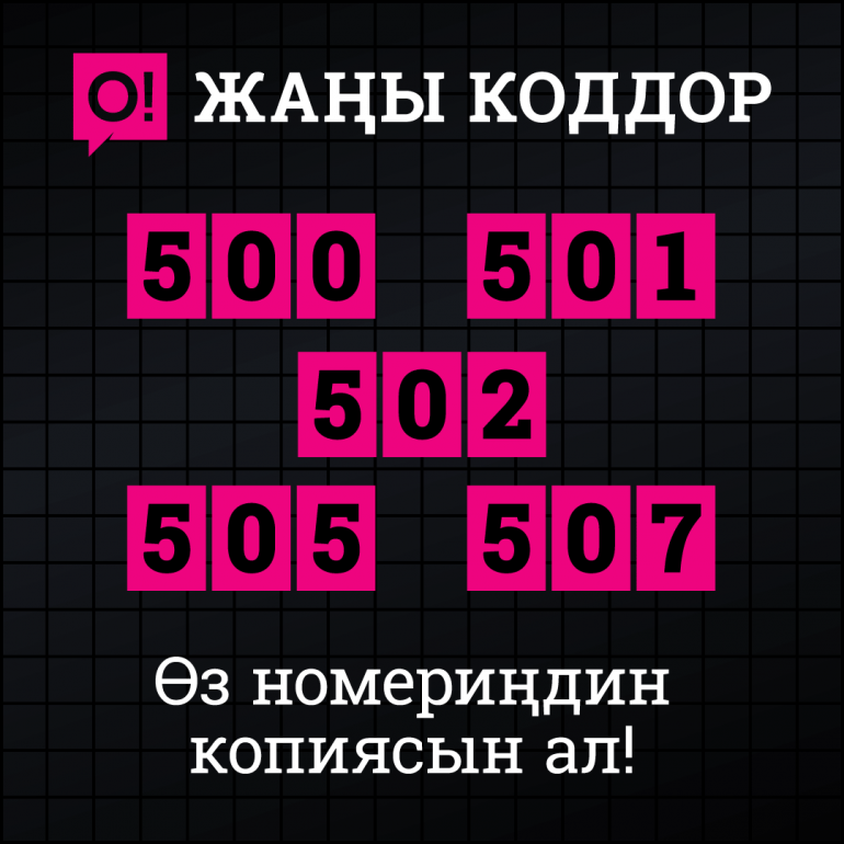 Мындан да көп сандаган абоненттерге түйүндүн артыкчылыктарын колдонуу мүмкүнчүлүгүн берүү максатында О! мобилдик оператору 2017-жылдын 26-сентябрынан баштап 0500, 0501, 0502, 0505, 0507 сандарынан баштала турган жаңы номердик диапазонду ачып жаткандыгы тууралуу кабарлайт.