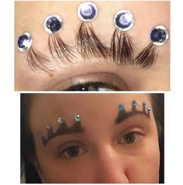 Стилисттер каш менен эмнелерди гана жасап көрүшкөн жок: боёп, өрүп, сүрөт тартып, ал гана эмес эки каштын ортосун терип да көрүштү. Жаңыдан визажисттик кесипке аралаша баштаган Софи Петерсон дагы бир жаңылык ойлоп тапты. Тагыраагы кашты жалтырактар менен кооздоо боюнча эксперимент жасап, жыйынтыгын таажы менен салыштырган.
