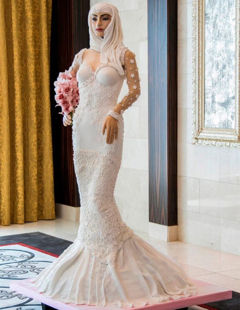 Дубайда 1 миллион долларлык торт жасалды. Үлпөт көйнөк кийген келиндин формасында түшүрүлгөн торттун автору британиялык дизайнер Дэбби Уингхем. Анын айтуусу боюнча: "Торттун сырткы жасалгасы үчүн 2 миңден ашуун түрдүү кремден даярдалган гүлдөр жана миңдеген жей турган бермет таштары колдонулган. Турмушка чыгып жаткан "торт келиндин" колундагы нике шакеги чыныгы бриллиант".