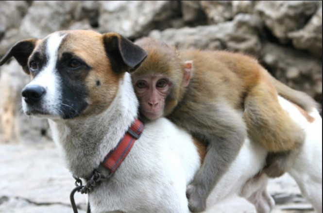 Маймылдын баласын багып алган ит интернетте кызуу талкуу жаратты