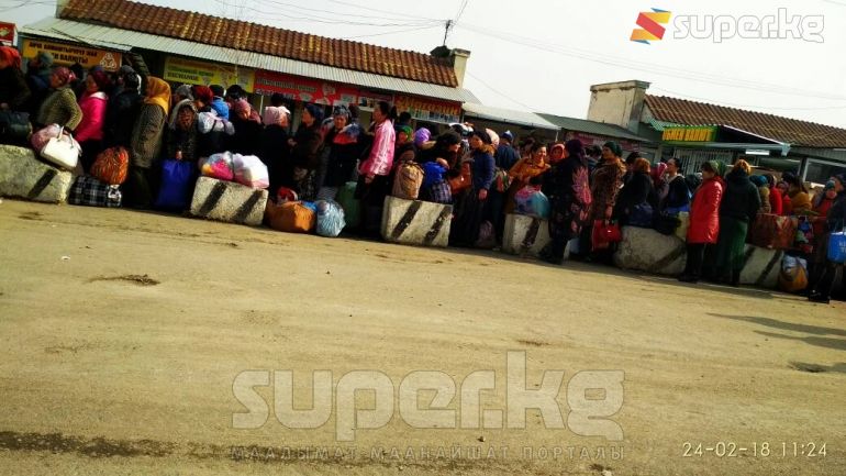 Ош облусундагы "Достук" көзөмөл-өткөрүү бекетинде жарым чакырымдык адам тыгыны жаралды. Бул тууралуу бүгүн, 24-февралда SUPER.KG порталына окурман билдирди.