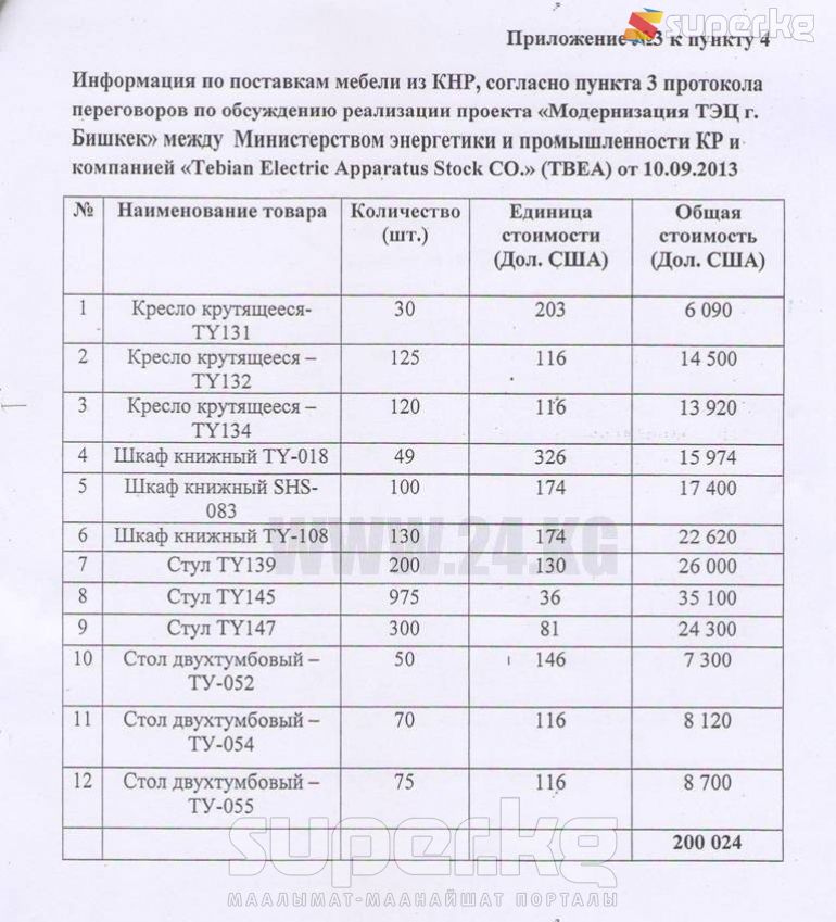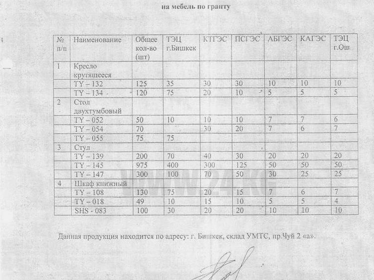 Кечээ, 26-февралда “Электр станциялар” ААКсы Бишкек ЖЭБиндеги аварияга байланыштуу түзүлгөн депутаттык комиссияга Кытай грантынан сатып алынган эмеректер боюнча документти берди. Анда эмерек сатып алууга 200 миң доллар коротулган.