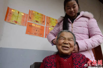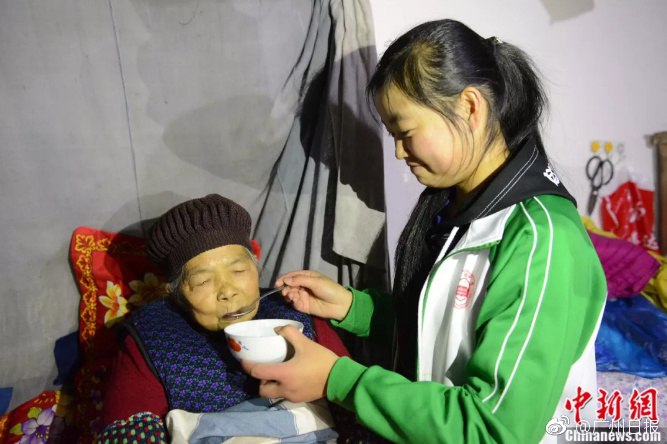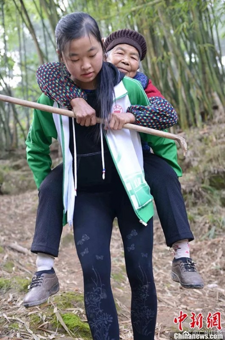 Кытайда 16 жаштагы кыз 5 жылдан бери чоң апасын артына көтөрүп багат