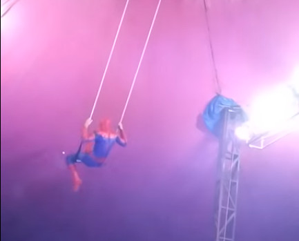 Видеодо "жөргөмүш адамдын" кийимин кийген цирк артисти трюкту аткаруу учурунда бийиктиктен кулап түшкөнүн көрүүгө болот. Артисттин абалы тууралуу так маалымат жок.