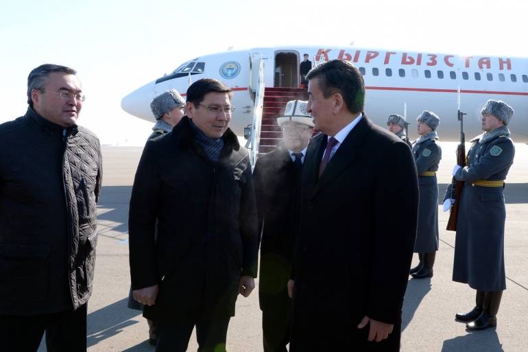Маалыматка караганда, Сооронбай Жээнбековду Астана шаарынын эл аралык аэропортунан Казакстандын вице-премьер-министри Аскар Жумагалиев тосуп алды.