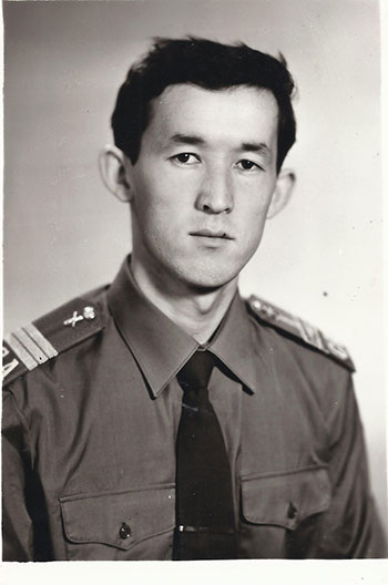 "Мен мектепти жалаң "5" менен бүттүм. Кийин атамдын кеңеши менен Оштогу куруучулук техникумун аяктап, андан соң аскерге чакырылдым. Ал жакта атамдын бизди тактыкка үйрөткөнү пайдасын тийгизди. Сержанттык мектепти 6 ай окуп, кийин Орусиянын Брянск шаарында кызмат өтөдүм.