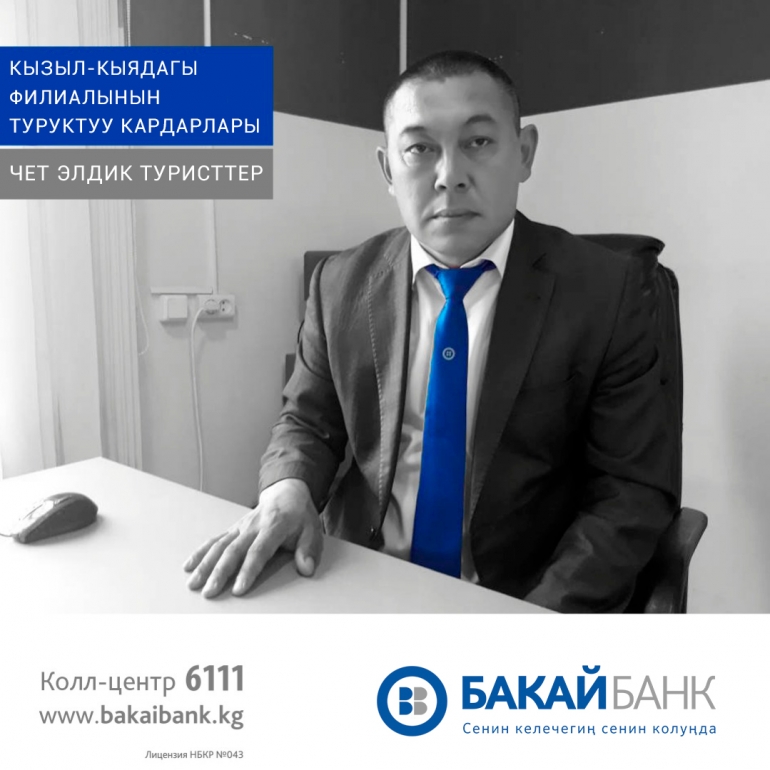 - Биз жөнүндө бир гана жергиликтүү тургандар эмес, Баткен облусунун коноктору да билсин деп жатабыз. Биздин аймакта көптөгөн кооз жерлер бар, мисалы, Абшыр-Ата шаркыратмасы, Айгүл Тоо. Бул жерлерге чет мамлекеттерден туристтер кызыгып көп келишет. Алар үчүн биз көптөгөн банктык тейлөөлөрдү көрсөтүүгө даярбыз. Кардарларыбыздын арасында Орусиядан келген коноктор бар. Алар орусиялык банктардын VISA картасын колдонушат. Биздин адистер жергиликтүү жана чет элдик кардарларга жогорку деңгээлде тейлөө көрсөтүүгө ар дайым даяр. Эгер сиз "Бакай Банктын" Кызыл-Кыядагы филиалына келип, тейлөөнү пайдалангыңыз келсе, иш графигин, дарегин жана телефон номерин сунуштайбыз.