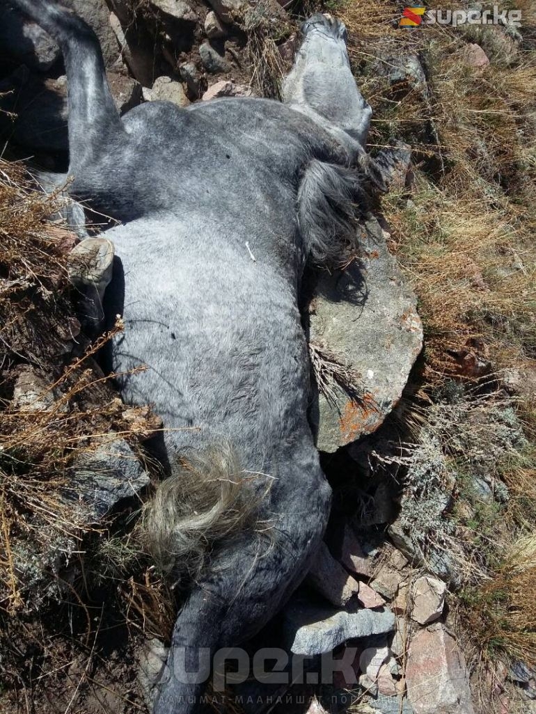 23-майдан 24-майга караган түнү катуу жааган жаан жана бороондуу шамалдан улам жардан кулап өлгөн 37 жылкы Ысык-Көл районунун Чырпыкты айылынын тургуну Таалайбек Дүйшеевге жана анын туугандарына таандык болгон. Бул тууралуу жылкылардын ээси бүгүн, 30-майда SUPER.KG порталына билдирди. Анын айтымында, өлгөн жылкылардын ичинен 5 бээ жана 5 кулун ага тиешелүү болгон.