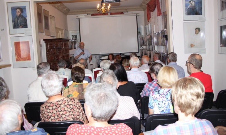 Китептин жана сүрөт көргөзмөнүн ачылышында жазуучу жөнүндө даректүү тасма көрсөтүлдү. Ошондой эле "Турналардын убадасы" китебинин автору, жазуучу Ирмтрауд Гучке Чыңгыз Айтматов менен бирге иш алып барганы тууралуу эскерүүлөрү менен бөлүшүп, китептен үзүндүлөрдү окуп өттү.