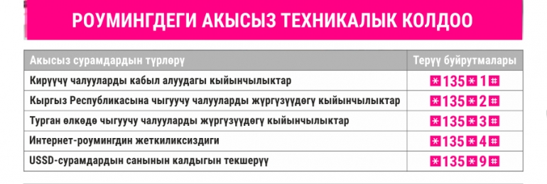 Роумингдеги акысыз техникалык колдоо