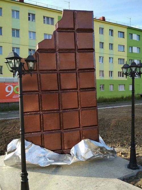 Ал эми шоколадга арналган "Шоколад плитасы" эстелиги Орусиянын Талнах районунун Норильск шаарына 2004-жылы орнотулган.