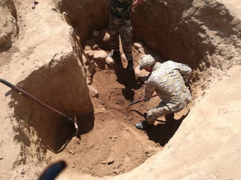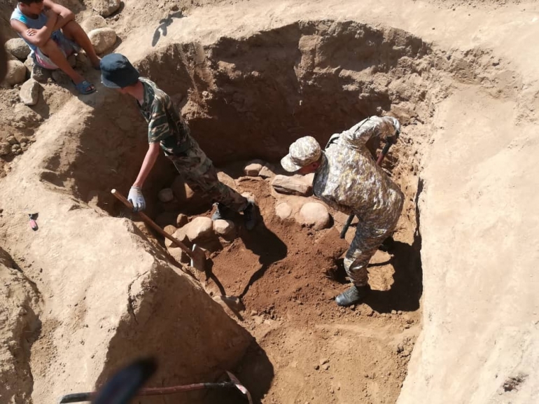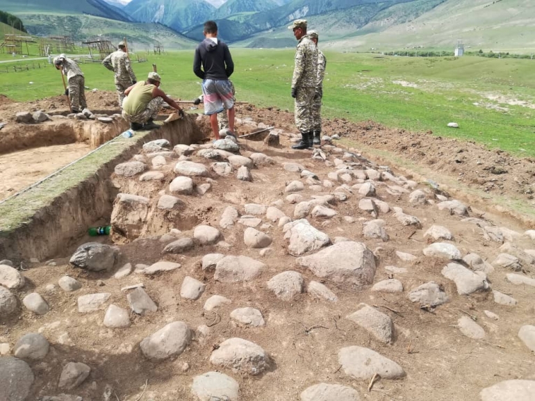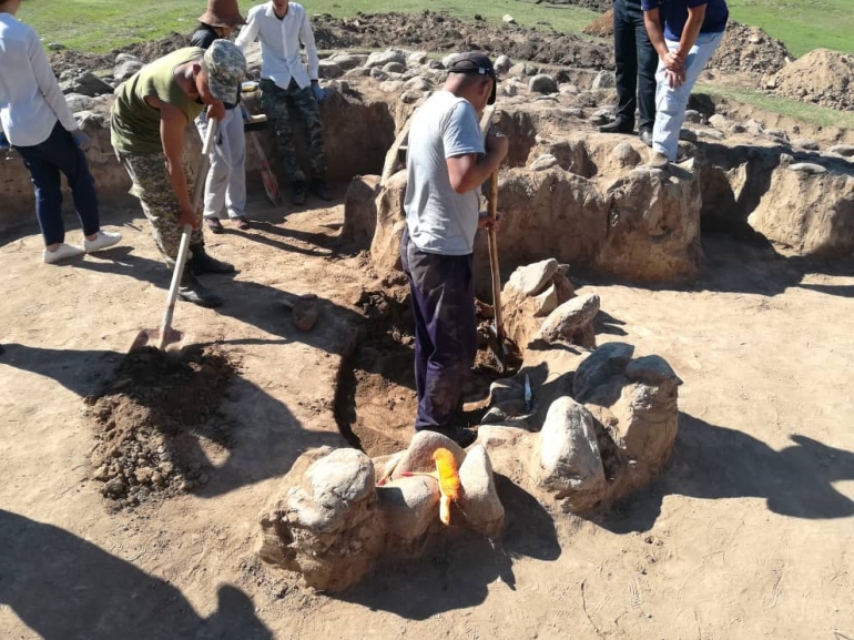 Археологдор казуу иштерин улантып адамдын сөөктөрүнүн калдыктарын таап чыгышты. Алардын айтымында, аталган сөөктөр жана буюмдар IV-V кылымдарда жашап өткөн жоокерге таандык.
