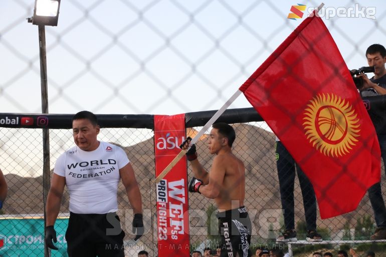 Кечээ, 4-августта Нарын шаарынын борбордук стадионунда Дүйнөлүк эр таймаш кулатуу федерациясынын "WEF PROFFIGHT 24" мелдеши өттү.