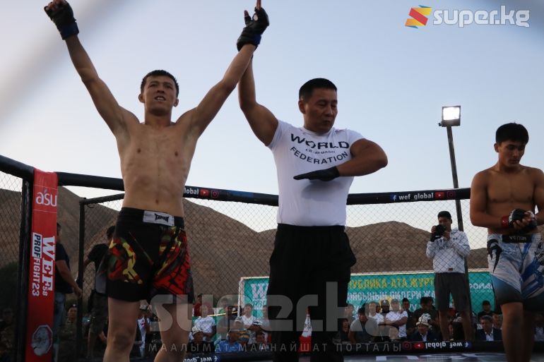 Ал эми мелдештин эң негизги беттешинде WEF PROFFIGHT'тын чемпиондук куру үчүн кыргыз мушкери Нургазы Балтабаев өзбекстандык Санжар Эркиновго каршы күч сынашты. Беттеш 77 килограммга чейинки салмак ченинде орун алып, Балтабаевдин активдүү кыймылы менен башталды. Балтабаев атаандашын айланып тебүү аракетин көрсө, өзбек мушкери аны көтөрүп чапканга үлгүрдү. Балтабаев каршылашын муунтуу ыкмасына алып, 1-раунддун 50-секундасында жеңишке жетти. Муну менен Нургазы Балтабаев WEF PROFFIGHT'тын чемпиондук куруна ээ болду.