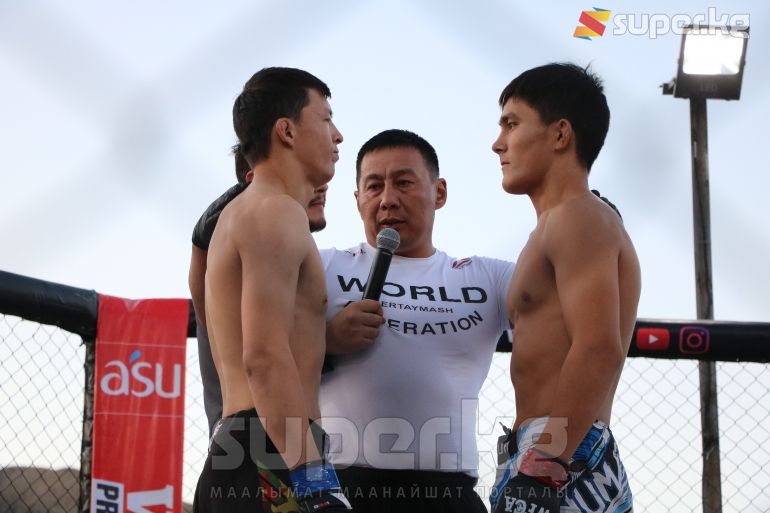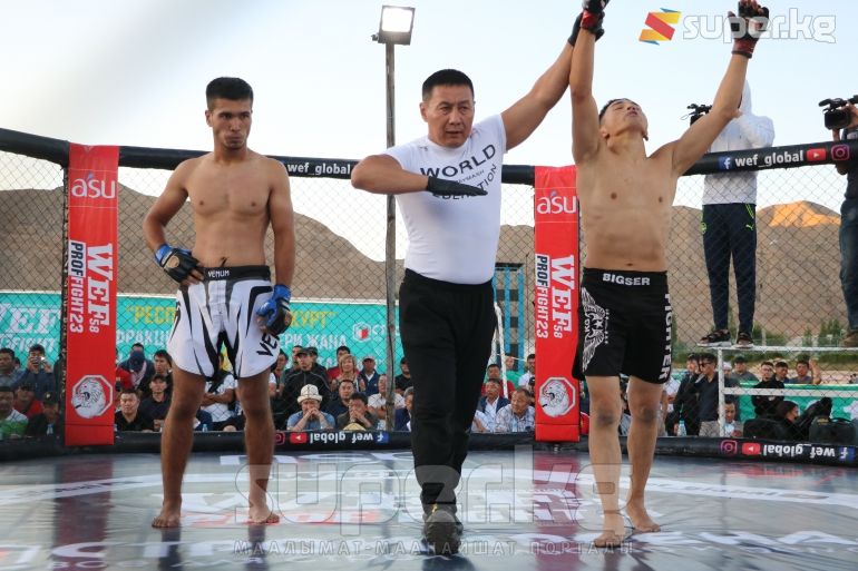 Кеченин негизги беттешинде "WEF PROFFIGHT'тын" чемпиондук куру ойнотулуп, анда кыргыз мушкери Нургазы Балтабаев менен өзбекстандык Санжар Эркинов кез келди. Мушкерлер 77 килограмм салмак ченинде мушташып, Балтабаев 1-раундда эле жеңишке жете алды. Ал беттештин 50-секундасында атаандашын муунтуу ыкмасына алып жеңишке жетти.