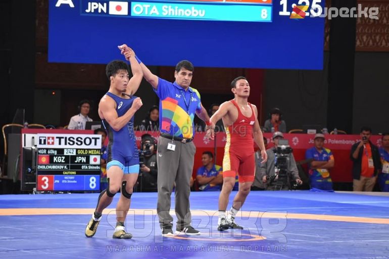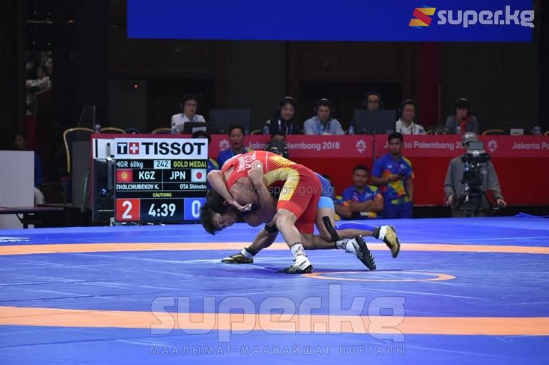 Бүгүн, 21-августта Жакарта шаарында өтүп жаткан Жайкы Азия оюндарында грек-рим күрөшү боюнча 2 салмак ченинде беттештер орун алды. Анда 60 килограммга чейинки салмак ченинде Кыргыз өлкөсүнөн Каныбек Жолчубеков катышып финалга чейин өттү. Финалда Кыргыз балбаны япониялык Ота Шинобуга кез келип, алтын медаль үчүн күч сынашты. Беттештин 2-бөлүгүндө Ота Шинобу Жолчубековду көтөрүп чаап, таза жеңишке жетти.
