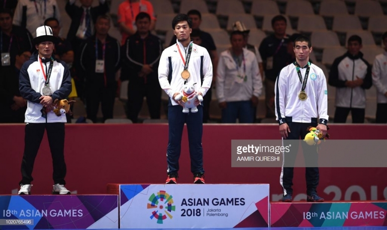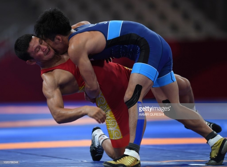 Индонезияда өтүп жаткан Жайкы Азия оюндарында грек-рим күрөшү боюнча кыргыз балбаны Каныбек Жолчубеков күмүш медаль тагынды.